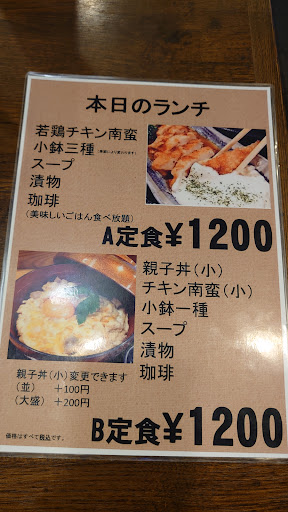 12時過ぎに訪問し、一席のみ空いていたので、すぐに案内されました。 近所の会社員らしき人が多く居ました。 カウンター4席とテーブル4人×2組、2人×1組、座敷とそんなに大きなお店ではありませんでした。 ランチは親子丼とチキン南蛮のみのようです。
