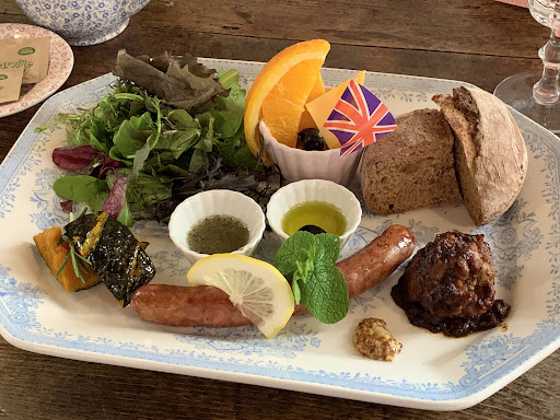 通りがかりに見つけた英国菓子のお店。 ランチしてすぐだったので、テイクアウトの予定で入店したのですが、お店の方がお席に案内してくださったのとあまりの店内の素敵さから、ついつい着席。
