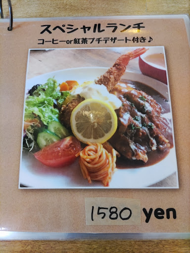 GW最終日に行ってきました、到着が11時半になったのでモーニングは無理でしたが(11時迄とのこと)ランチメニューを食べてきました。 生姜焼きやロコモコやら色々ありましたが、ベタにスペシャルランチを頂いて来ました。 良い感じに熱々の海老フライと豚かつ、ピラフオムレツでした。丁度良いサイズで、後からセットの紅茶とプチケーキを頂いて帰りました、次回はモーニングに行きます。 カウンター4人、二人用×4...