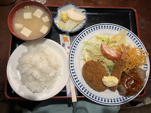 (2025.7) ランチに伺いました。 ランチセット(ミンチカツ、コロッケ、白身魚フライ) 若鶏の唐揚げ定食を注文。 ランチセット、ミンチカツ肉々しく美味ぁ~✨白身魚フライ美味ぁ~✨コロッケ美味ぁ~✨ チキンカツがコロッケに変更💦💦 唐揚げサクッとジューシー美味ぁ~✨ 安くて美味しいランチ最高✴️✴️ (2025.5) モーニングに伺いました。 アーモンドトーストセットを注文✴️ アーモンドが香ばしくて美味っ✨ ハムエッグ美味っ✨ アイス珈琲美味っ✨