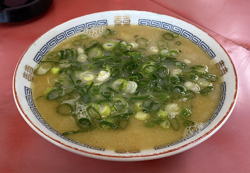 Read more国道250線沿いということで前を通ることはあったし、ずっと昔から存在は知ってたけど入ったことがなく、昼11時頃にたまたま車で前を通ろうとした時に同行者がここ入りたいと言ったので入店。 かなり年配の親父さんは無愛想というか耳が遠いのか客のほう見ないで麺を茹でるだけな感じ。 女性の方は娘さんなのか、親父さんの相手がしんどいのかため息多い&親父さんに火を付けてから入れてと注意してたりぴりつく感じだけど、客には笑顔で良い感じ。 そんなに期待はしてなかったけど、ラーメン食べたら本当にうまくてビックリしました。 高菜混ぜおにぎり1個50円とライスが200円なのに謎の金額設定だけどこれも美味かったので本当に満足でした。 おにぎり4個食べた方がお得だなと思ったけど、辛くて4個も食べれない(笑) ラーメン800円、ラーメン大1000円と安くはないけど、最近の洗練された豚骨ラーメンとは違って懐かしさがあり、古めかしい店内もカウンターのみとい...