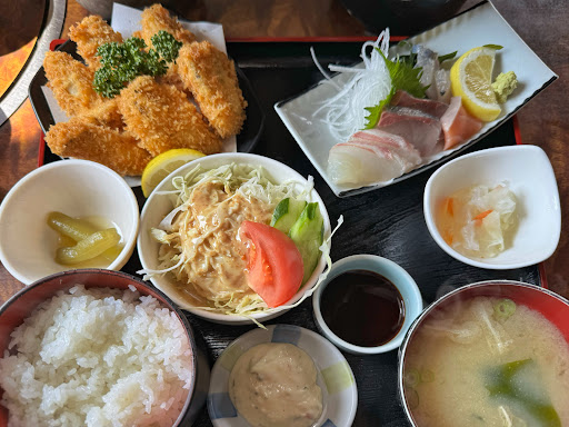 Read more今年は貝毒のおかげで牡蠣がたべれなかった。 5月に入って食べれるようになったので初めて訪れました。 牡蠣目当てでしたので色々オカズがあるなぎさ定食を頼みました。 なぎさ定食はカキフライか季節によって天ぷらを選べるそうです。 今回はカキフライ。ん~1年ぶりの味、美味しい。揚げ方もサイコー。 他にお刺身やダイコンのそぼろ煮があって楽しめました。 コスパ的にも満足できました。定食屋さんなので男ひとりでも楽にはいれました。 星が4つの理由はなんせ周りの客の声が騒がしい。 子供の行動なので仕方ないとは思いつつも限度がある。 これに対し店として何も対応されていなかったので星一つ減らさせて頂きました。 でもまた行きたいと思った店でした。