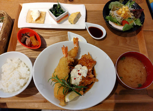 持って来てくれた時に料理の説明をしてくれました。 どれも美味しかったです。 竜田揚げが一番好きかも。 ご飯は半分にして正解でした。