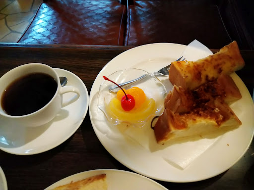 Read more母の日にケーキ買うついでに40数年振りに訪問、なんとなく駐車場が狭いイメージでしたが、普通に30台近く停めれますね、前の道が混むのもタイミング次第ですね、入口付近から見た感じでは広く無さそうに見える店内も、南北に縦長なので4人用テーブル×18くらいありました、レトロ感満載で。 客層も伺った10時過ぎには年配の方が多くおられて歴史を感じました。 コーヒーとかのメニュー表だけ取れてなくてですが基本的なサービスモーニングが主流なのかガッツリ系も多少ありそうでしたが写真がなく、店員さんの勧められるまま、コーヒー代だけのモーニングサービスを頂戴しました¥500(ちなみに日曜日のセット) サンドイッチ小とピングレカットと茹で卵でした、もちろん値段的にもリーズナブルで美味しかったです。 最後に、ケーキを買えるってのもありがたいです。 本...