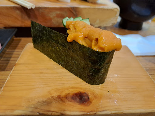 I got here around 6:30PM, and already, there was a line wrapping around the building, maybe 20 people deep. It took about 50 minutes of waiting to get seated, but your wait time will heavily depend on the size of groups ahead of you. An employee will hand you a menu while you're in line for you to order from, and the sushi will be ready for you when you get inside. They do have an English menu, should you need one.
