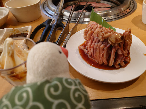 スタッフの方は教育をしっかりされている印象です。配膳はロボットも使っていて面白かったです。焼肉ポリスが途中網を代えに来てくれたり空いた皿も折を見て下げてくれたりと、店内もトイレも含めてピーク時でも清潔そのもの、とても快適でした。スタッフの配置も十分なようでランチタイムにありがちな殺伐とした雰囲気がなかったのもとても好印象です。