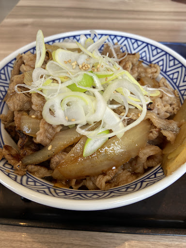 また店はフードコート仕様となっており、ホールに目が行き届いてないのか、テーブルや椅子がかなり汚かったです。 爪楊枝入れもくすんでおりました。 最悪だったのは湯呑みです。 大量のゴミ(黒いもの)が浮いており、私のだけでなく、一緒に利用した連れの湯呑みにも入ってました。 男性2名の定員は厨房とレジに付きっきりなので、完全無視の状態です。 吉野家の名前を使った最悪店だと思いました。