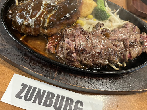 Read more美味いとよく聞いていたので試しに初めて行きました。 まず接客は普通。 しかし肝心の味が残念の極み。 鉄板はほとんど熱されてないし、ステーキもハンバーグも生焼け。 ステーキはレアと云うより生焼けで柔らかいじゃなくグニグニで噛みきれない。 ハンバーグのデミグラスソースもコクも何もなく、家で嫁の作るハンバーグの方がはるかに美味い。 店のシステムもズンバーグが出来る何十年も前からあるミスター◯ーグの完全なパクリ。 もちろんミス◯ーバーグの方はステーキもハンバーグも比べようもないくらい美味しいですが。 強いて云うならドリンクが飲み放題じゃ無い分、劣化版パクリ。 値段もミスターバ◯グの約倍以上、まぁ勉強代でしたね。 とりあえずお金を出して食べるものでは無い、二度と行かないと思います。 本家のミ◯ターバーグの方は開店前に並ぶ必要があります...