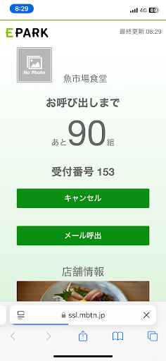 Read more前日に漁港側にある魚市場食堂を利用した為、今日は姉妹店の岸壁市場側へ。 念の為に氷見到着後(8:03)歩いて漁港に向かい魚市場食堂で整理券を取るも昨日より遙かに待ち組多い8:30時点で90組待ち…(°_°)