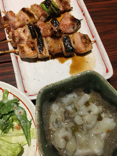 焼き鳥含め串系は2本からの注文らしく、この制限が無かったらもうちょっと他のも食べれたのになぁと少しだけ残念。 でも焼き鳥も他の料理も全体的に美味しかったので満足。小さい子連れのお客さんもいたし、いい意味で店員さんの視線も感じないのでゆっくり出来るお店だった。 焼き鳥は皮の塩とねぎまのタレが特に美味しかった。あとカマンベールチーズ揚げ串。推せる。 エビも最近よくあるブリッブリの変な食感のやつじゃなくてちゃんと美味い。 ライチグレフルカクテルと大葉梅肉ささみは、個人的にはイマイチだった。味噌汁はインスタントぽい味。