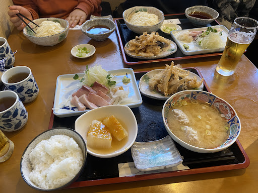 Read more12/8氷見のお寿司は日本一と聞いたので、有給を使って大阪よりお寿司旅行。 あいにく天気は前日から雨… お目当てのお寿司屋さんに向かってる途中、おがわさんを発見…午前7時から開店してるらしい。 お目当てのお寿司を食べて余裕があれば立ち寄ってみよう、氷見うどんがあるみたいだし。 そしてお目当てのお寿司屋さんに到着すると、、、定休日…。 速攻でUターンして12時数分前におがわさんに到着。そしてA定食(氷見ぶりの刺身、氷見うどん、白海老の天ぷら)を注文。 10数分で料理が到着!! まず氷見ぶりという存在を知らなかった。身が全体的に赤身がかっていて肉厚で臭みも全く無くメチャクチャ美味しい!!肉厚もあるしプリプリやから一つの食べ応えが凄い!! 失礼ですが、大阪のスーパーに売ってるブリとは比べ物にならない!! 備え付け?おまけ?サービス??タコの刺身も入ってました。これまた美味い!弾力とかは無くどっちかといえばねっちょりした感覚でしたけど噛めば噛むほど美味い。正直この二つが美味し過ぎて氷見うどん、白海老の天ぷらの記憶が…霞むほどでした。 氷見うどんも天ぷらも大変美味しくいただきました。 最初値段見た時は、中々攻める設定金額やな…と思いましたが食べ終わってみればお値段以上やったと思います。 おばちゃんも気さくな方でもっと喋りたかったですけどシャイボーイなもんで…また行った時はお酒でも飲みながらゆっくりさせてもらいま...