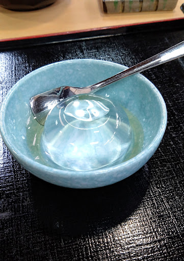 尾瀬の広大な自然林のから湧き出す自然水を 閉じ込めた檜枝岐の特産ゼリー 同じく檜枝岐村産の蜂蜜をかけてある サッパリつるんとした甘味