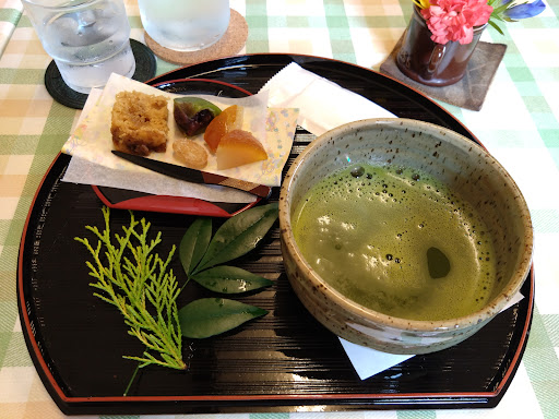Read more和菓子セットを抹茶で頼みました。 地元の和菓子を使っているとか。 柚子羊羹が、柚子の風味豊かで美味しかった。 草もちもモチモチで抹茶によく合いました。