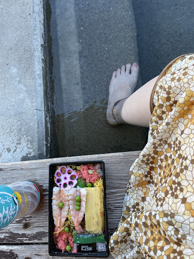 新しく出来たイベントスペースのハマポケさんで金曜日に隔週でお弁当も販売🍱しているそうで、早速ちらし寿司を。。。🍤 駅近くの足湯に入りながらーー♨️ 見た目も宝石箱みたぃで可愛い〜❤️お弁当もめっちゃ美味しぃぃ〜😍 これは夜も食べに行かなきゃ🍣✨ 美味しぃお寿司をあ...