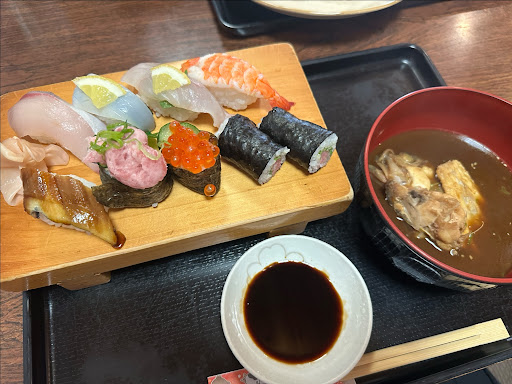 Read more旅先でぶらりと立ち寄ったお鮨屋さん。近くには観光客に人気のお店もありますが、静かにランチをしたくてこちらにお邪魔しました。 中は結構、広くて綺麗。 上握り(1800円)、味はまずまず美味しい。ただ、なんだか物足りない。せっかく海の近くの鮨屋さんに来たのになんだか都会の街中の鮨屋と変わらない感じ。いや、ちょっとレベルの高い回転寿司とあまり変わらない。ネタの説明も無し。アラの入った味噌汁が付いていましたが少し濃い。 同時に頼んだアジフライ、コレは確かに美味しかった!鮨屋のカウンターでアジフライで生ビールをやるのもオツかな?と、自身を納得させました。 なお、大...