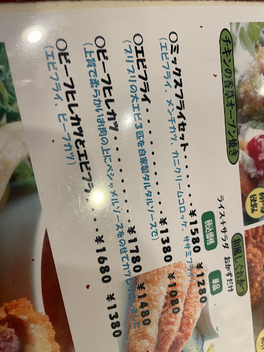 大阪府枚方市。1989年創業。ハンバーグなど肉系14種、フライ9種、パスタ14種、ライス15種を提供する洋食店。提携駐車場もあり気軽に利用可。