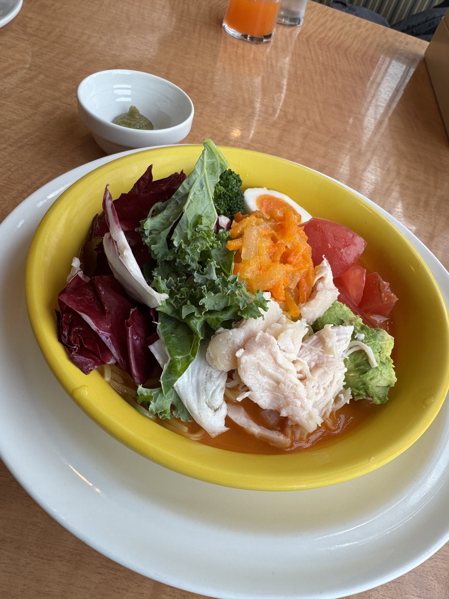 Read more久々に行きました。店側の省オペレーションは、以前より更に進んでいるようで、配膳ロボット2台が、所狭しと動いてました。 で、注文なんてすが、「お好み和膳」の「焼き九条ネギのもろみチキン」に白米をミニしらす丼、味噌汁を豚汁に変更しました。 妻は「大人のお子様ランチプレート」に「ミニねぎとろ丼」を追加。息子は「ビターソースビーフハンバーグ」に「チーズソーストッピング、フランスパン・ドリンクバーセット」。その他、山盛りポテトフライ、ほうれん草ベーコン、から好しのももから3個など。まぁ結果的には、チョットお高めになってしまいましたね。郊外なのに、都市部価格なのが納得行かないけど… 味は、まぁ概ね美味しいレベルではありましたね。以前よりは、良くなっているかと思います。特に「もろみチキン」は香ばしさも感じられ、思った以上に美味しかったです。 後、支払いのセルフ化...