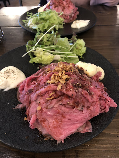 Read more月曜日のランチタイム、ローストビーフ丼並盛を頂きました。近年流行のローストビーフ丼ですが、この店と同様にプレートで出て来る所も少なくありませんね。「丼」とした方がわかりやすいからでしょうか。ビジュアルは最近のRB丼としてはやや地味ですが丼より写真映えしてオシャレです。 ソースは玉ねぎベースでやや和風か?私にとっては甘過ぎでした。マヨネーズソースもかなり甘い。美味しいというレビューもあるので好き嫌いの問題かもしれませんね。スパイシー系とチョイスできれば嬉しい所です。肉とご飯の比率はちょうどよく、分量は普通です。肉はかなりの薄切りなので食べやすいですが、肉肉しさを...