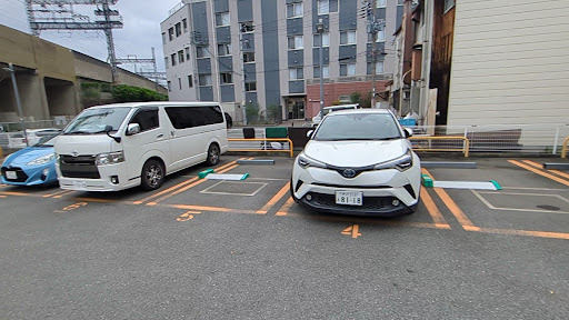 店の北側から裏手に駐車場が3台。3、5、6番。