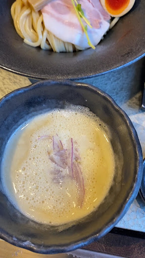 Read more(English below) 昼過ぎの時間に入店。 鶏つけそば、卵、ごぼうトッピングと、毎月25日の限界濃度をオーダー。 本店だと長蛇の列の限界濃度を並ばずに食べられるのはありがたい🤭 時間によっては並びがあるようですが、本店の長蛇の列を避けたい方はこちらなどの店舗に出向いてもいいかもです🤔