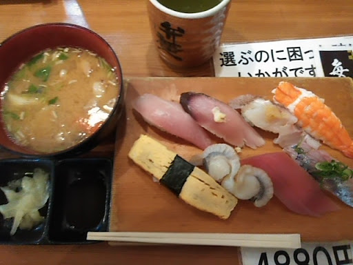 Read more中央市場が休みなので限られたコース(寿、福)しかなかったのて寿コースを注文。 寿司が出てくるまでの時間は約20分程。 寿司、赤だし、デザートのワラビ餅が一気にテーブルへ。ほぼ定食 まぁまぁ混んでいた時間帯だったがバイトのお姉さん達もまだまだ余力あるように見えたので料理が揃ってからまとめて出すのではなくこまめに出したらもう少し美味しい料理が提供できて且つ、食べ終わりを早めて客の回転にも繋がるんじゃないかと…