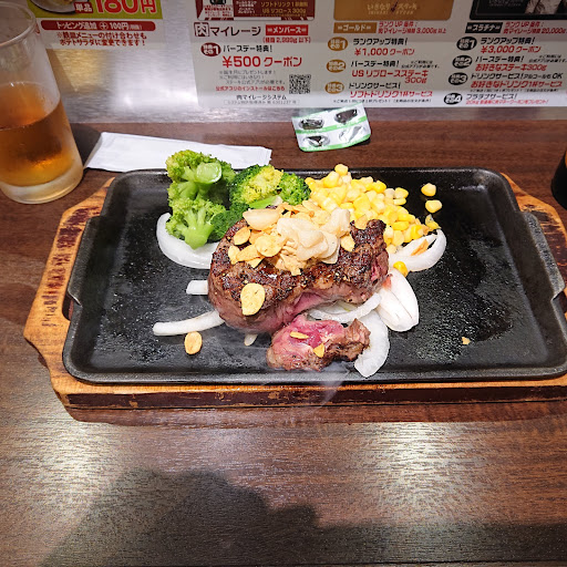 Read moreニトリモール枚方に出店以来、一番多く訪れるいきなりステーキ店舗となっています。当初の出店コンセプトとは違って、ファミリー層狙いなのかこの店舗は、全席椅子席で立ち食いはありません。助かったー。 何度か訪れますが、ヒレステーキ200グラム・レアを定番に注文してます。ですので肉マイレージの伸びも非常にゆっくりで入会から3年位経過しますが未だにゴールドに昇格できません。残念😭 本日も誕生日クーポンが使えたので500円引きとなりましたが、やはり2000円/一食に達するお値段は1割ほど割高かなという感じがします。 イロイロガンバッてらっしゃるようですので勢いを取り戻してほしいモノです。 この店舗の決済方法は、多様で便利です。私は、大体肉マイレージで支払っていますが。