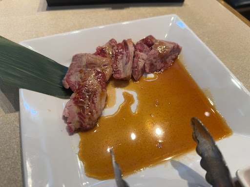 Nice yakiniku place with parking low, and wonderful sunken leg Kotatsu style seating. Plenty of space between tables too, and they are doing a lot for CoronaVirus precautions. We went for the weekday lunch cause we are cheep. For ¥999 a person ( no drink bar) and 60 minutes only we were definitely full! The regular dinner is of course more than ¥2000 a person. But for lunch you can choose unlimited orders of pork kalbi, pork roast, weiners, horumon, chicken. We only basically ordered roast though cause it was the best that day. We tried the others, still good though! Included is rice, soup, and curry at the bar. Ice water too. On the digital order menu ( which only shows your possibilities that are included in your plan! Very easy!) you could order kimchi, seaweed rice, buttered corn, French fries, salted cabbage, and daikon salad ( which I don’t recommend as there’s no dressing). It was definitely worth it! Staff was fast too! No waiting too long for meat orders.