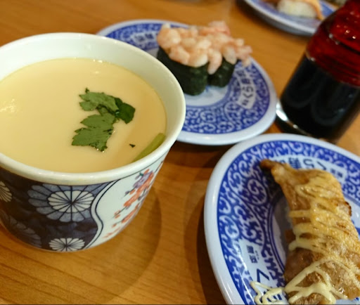 Why this place is great: •100 yen sushi! •Choose from the plates as they glide past regular sushi train style, or order from the tablet and get it delivered on a ridic fast conveyor belt (above the normal train). •Put your finished plates down the chute. After every fifth plate, watch a little animation that tells if you win or lose. If you win, you get a little gatcha gatcha toy. If you lose (which is pretty likely), you will feel terrible and comfort yourself by getting...