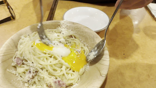 ★3にした理由は、サービス面です。実はピザも注文していたのですが、一向に来ず……。イカ墨パスタ→ハンバーグとライスが来たところで女性店員さんが「ご注文の品はお揃いでしょうか」ときたので、「あ、グラタン来てないです。あとピザもまだです。」とお伝えしました。「あ、はい、すみませーーん」とめちゃくちゃ思ってなさそうなお返事頂きました。 少し経ってグラタンが来ましたが、ピザ来ず。結局最後まで来ませんでした。