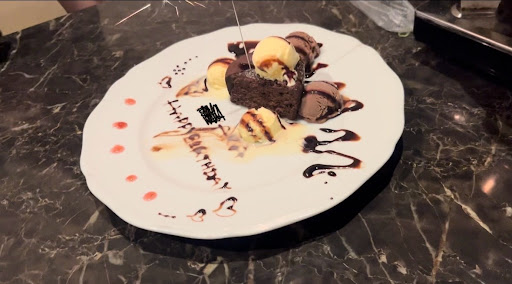 ・バースデープレートのアイスがだいぶ溶けた状態で持ってきて、文字が消えている(写真:1枚目は実際にプレート持ってくる瞬間の動画の切り抜き)