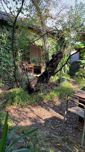 大阪の星ヶ丘駅から徒歩約5分の場所にあるこのお店は、旧洋裁学校の建物隣に位置しています。洋裁学校の入口がおそらく正式な入口だと思うのですが、行きは迷ってしまい秘密の入口のような(ウェルカムの看板と地図があったので出入り禁止の場所ではないです)ところから入ったので、お店に到着するまでにジブリの世界に迷い込んだかのような自然に囲まれた空間が広がっていました。
