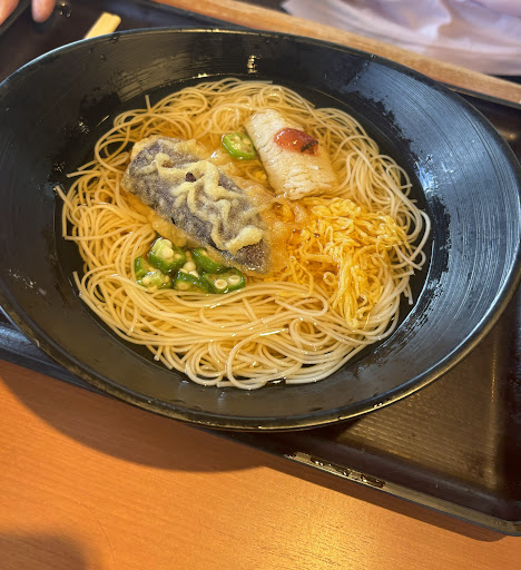 遅い昼飯食いに行ったけど ここはもう しゃぶしゃぶを売りにしてるんかなぁ…🤔 今回は鍋料理は注文せず 天丼食べた。 連れ達は寿司とか天ぷら等色々ついてるセットを注文したけど味は普通に美味しい。 寿司の下に すのこひいてあるんやけど、カッピカピやから寿司飯全部張り付いてボッロボロに砕けて食いにくい言うてたから 少しすのこ水で濡らすなりなんなりしといて~やさとさんよ👋