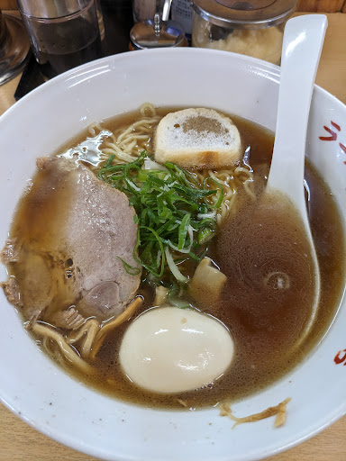 丼が何故か黒石店のもので着丼(笑) お麩がトッピングされており、以前青森市内で食べた煮干しラーメン店でも載っていました。 青森の煮干しラーメンは定番なのですかねぇ(笑)