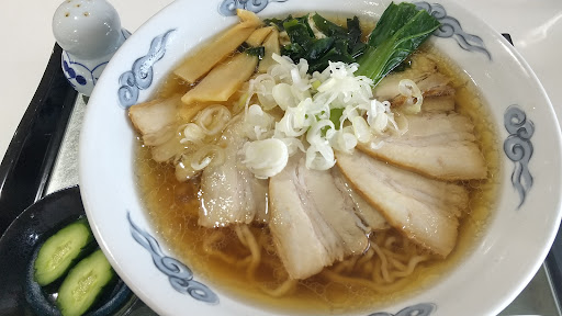 メニューに大盛表示はないが、言えば+150円でやってくれます。 スープはあっさり、旨味は中途半端。少し甘めです。 この地域は自然薯推しなんですかね? 自然薯が練り込まれた麺。中太のちょっとモソッとした食感でゴワビロ。ツルツルはしてないです。特に美味しいわけでもなく。 チャーシューはメニューの写真では固めに見えたが、豚バラが出てきました。 ちょっとパサついてて、豚バラが台無し。 他の具も微妙。