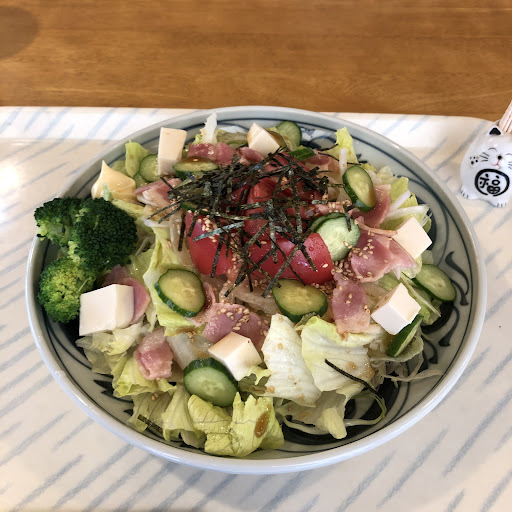 Read more国道49号線沿いにある個人店です。静かな店内です。サラダうどんを頼みました。(750円) トマトやブロッコリー、レタス、キャベツ、玉ねぎなど野菜がたくさん食べれま...
