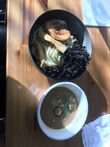 8月6日の昼に訪問、店内冷房ついてません。故障かと思いきや一ヶ月前にも似たような投稿が。 そして冷やし系メニュー無いから汗だくで食べることに。 外のが涼しい、命を削って食べることに。 連れは以前食べて美味しかったという牡蠣ラーメン、確かにこれは独特の味でこの『スープ』はここでしか味わえない。 こちらは濃厚と謳うつけ麺、野菜と鶏ガラで濃厚とは天◯一品を彷彿させる。 うん、確かにドロッとして粘土はある、が味が?? かすかにカレーのようなスパイス感はあるが、旨味というと…?盛り合わせの魚粉(野菜鶏ガラなのに)を混ぜ、まぁそれなりの味に。 太くて大きいメンマは存在感とは裏腹に味はしない。 麺は平麺でつるっと感はあるがその分、他のつけ麺にありがちな極太麺に比べ小麦の味は劣る、並盛だが丼大きくて量はあるのか?と思ったが水切り兼ねたすのこでかさ増し、大盛り、特盛は別料金。 すのこある割には、水切りというか麺に水分無く、くっつきまくり。 炙りチャーシューは、全面よく焼いてくれてるのでもはや焦げ味、中までしっかり火が通ってます。評価点は岩海苔が入っていること(私が好きなだけ) あと店員も言うでくれますが、スープめちゃくちゃあつい!誤って素手で触れたら火傷します、スープ割り飲むときも火傷に気をつけて!! 店内もスープも暑い分、水のおかわりだけは外国籍の店員さん二人で回してますが、がくれます。 元焼き鳥屋?だかを生かした店だったはずだが日本人の従業員と、その面影はもうない。牡蠣を使ったエスニック料理店に...