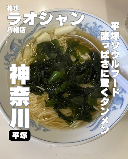 花水ラオシャン@ 神奈川県平塚市西八幡1-1-4 どうも、さぴおです ✍️ワカメタンメン 500円 ______________ 🍥ポイント ✅すっきりした酸味と柔和な麺が心地よい平塚のソウルフード! ✅炒めモノは乗らない"平塚タンメン" ✅ワカメタンメンがわずか500円 ✅老郷とは無関係…?  ̄ ̄ ̄ ̄ ̄ ̄ ̄ ̄ ̄ ̄ ̄ ̄ ̄ ̄ [点数] 83点...
