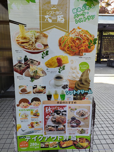 広い公園の中にメニュー充実のレストランがあるだけで子連れには助かります。 一部テイクアウト用の弁当もあるので入店に並ぶ場合や外で食べたい時にも助かると思います。