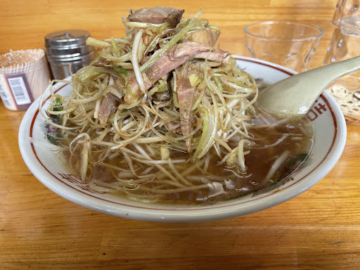 厚味メンは、もやしが入った醤油ラーメンにネギチャーシューがてんこ盛りに乗ったオリジナルラーメンです。 スープはオーソドックスな味わいですが、辛味の効いた白髪ネギと生姜がアクセントで、意外とサッパリと食べられます。 麺は軽くウェーブが掛かった中細の中華麺で、啜り心地は悪くありませんでした。 ラーメンのボリューム感があるので、他店だともう少し値が張りそうな感じですが、800円での提供は嬉しいですね。