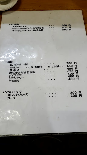 店内の頭上にはサーフボードにメニューの短冊が飾られています。 また店内には釣り竿なども飾られていて、海の男感が漂っています。 サーファー風のワイルドなご主人なので、その風貌とお店の雰囲気は合致しています。 ラーメンや焼きそばなど麺類は豊富で、ご飯ものはチャーハンや中華丼、ライスなどその他に餃子や野菜炒めネギチャーシュー、ピーマン&ウインナー炒めなどのおつまみや一品料理も提供されてます。