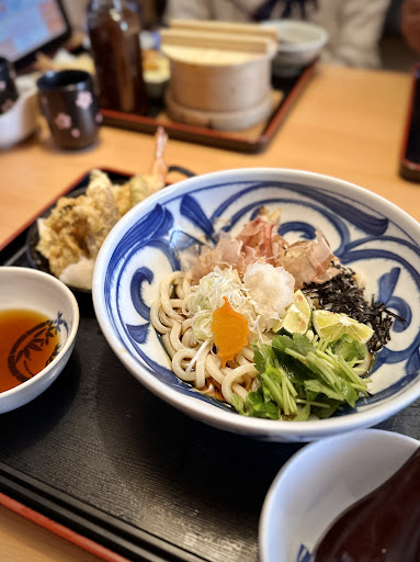 今回は季節のおうどんをいただきました。 ちゅるちゅるで細めの麺が食べやすくてGOOD♡ スダチなどの薬味って少ないイメージのファミレスですが… ここは大きい切身が2つも付いてて嬉しかったです♡ そのほかの薬味もた〜っぷり乗ってて美味しかった...