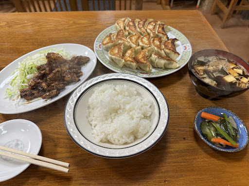 中定食を注文すると、大ぶりの餃子が15個も付いてきました。皮はモチモチ、中身はジューシーで、にんにくの風味が絶妙に効いています。餃子好きにはたまらない一品です。一口かじると、肉汁が溢れ出し、食欲をそそります。