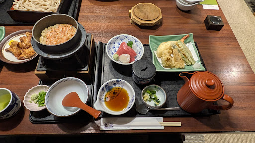 A traditional Japanese style restaurant with great ambiance. We ordered cold soba with tempura and ton-katsu set. The green tea was complimentary. Host was also very polite. If you want to experience Japanese style restaurant with traditional food then do visit if around... Though the food was a bit...