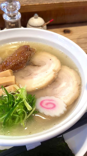 その勘は大正解でした‼️ 醤油、塩、担々麺、あとワンタン麺があり、普通なら醤油に行くところ、メニューを見てたら「凪特製塩ラーメン-ホロホロ手羽先入り」というメニューが目に飛び込んできて、珍しく塩に。
