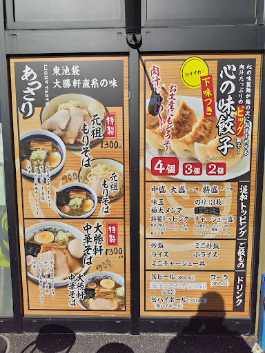 Read moreつけ麺の王者を謳う、とみ田のプロデュースの店、スープや麺をとみ田直営のとこから仕入れてるらしい。 まぁ肝心の、とみ田自体がアレなんで…。気になる人は松戸のトミ田本店の口コミ見て頂ければ。 大勝軒と、とみ田を大々的にアピってますが、もし2つを完コピ若しくは越えていたら日曜の昼に並んでない訳はない。 とりあえず特製濃厚豚骨魚介つけ麺中盛りと、相方は特製元祖もりそば中盛りを。つけ麺やにある、○盛りまで同料金とかはない。 濃厚豚骨魚介つけ麺は、昔流行ったあの味。ドロミはあって麺によく絡むけど新しさはない分驚きもなく不味い訳ではないが凄い旨いわけでもない。 麺は太さ、色こそとみ田っぽいが、なんだろう?小麦の風味や味がせず水っぽい。とみ田って春よ恋使ってたと思ったけど、使ってる量が少ないのかな?旨味はない。麺が旨く自信持ってるとこは塩で食べさせるとこあるが、この麺は…。 具材のメンマは濃いスープの味に包まれ食感のみ。特製のは別皿できます。煮卵は柔らかくて半熟具合も(^^)b 吊るし焼きチャーシューは、塩気があって旨い!のだが煮豚?のタレがその美味しいチャーシューにまでかかってしまい、美味しさ半減。煮豚のタレが甘過ぎ。しっとりももチャーシューもタレに侵食されしっとりがびしゃびしゃに😨こっちも美味しい味だったのに。せっかくの別皿が、意味をなさない。なお、スープにいれると濃いドロスープに打ち負かされるのでそのまま食べるのが良き。餃子はデカイ方を注文。肉汁たっぷりで美味しい、デメリットは、でかすぎて食べにくいこと(笑) 相方の盛りそば、あま酸っぱいあのスープ、こっちの麺はなにつかってるんだろう?大勝軒と比べるとツルッとしていてやや細い気が?? 総じてコスパは良くなく、濃厚豚骨つけ麺に関しては、セ○ンの冷凍で良いかな。特製の具材に関しては煮豚のタレが他のチャーシューにかからなければ美味しいので、持ち帰れるならその具をセ○ンの冷凍とみ田に入れたら美味しいと思う。 模倣しても本家は越えられないので、むしろ気になるのは曜日や限定日で作られる限定麺のが気になるので次回...