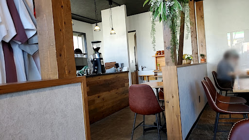 Read moreオープンの看板が出てからずっと気になっててやっと今日行ってきました(´ω`)アイスカフェラテと店員さんにオススメされたチーズケーキも一緒に頼んでみました。コーヒーはいつも砂糖貰いますが初めてだったので店員さんが持ってきてくれたのを何も加えず今日は飲みました!とても美味しかったです。チーズケーキは甘くボリュームがあり満足しました。ちなみにお花の教室(フラワーアレジメント)もしてるみたいでとても気になります。入口入ってすぐにフラワーアレジメントの商品やお店のマグカップ、エコバッグなども売っていて私はエコバッグを購入しました。次行った時はマグカップ欲しいな…。ちなみに店員さんが着てるオシャレなTシャツも売ってました! 毎日必ずコーヒー飲む程コーヒー好きですが子育てでなかなかお店のは飲めません。なので、近くですがたまにしか来れないと思いますが…また行きたいと思えるコーヒー屋さんが出来て嬉しいです。今度は家族みんなで来てみます♪ お店は清潔感ありオシャレで店員さんの雰囲気も良い、コーヒーも美味しいので是非行ってみてください(´ω`)