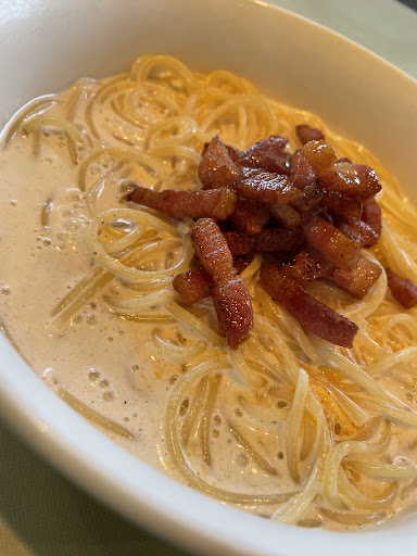 Read more前からずっと気になっていた平塚のEAT! ネットでメニューを見て、一目惚れして絶対食べるぞ!と思っていたのがこの【卵とベーコンのスパゲティ】。ようはカルボナーラなんですが、スープパスタっぽくとてもクリーミーです。 ベーコンはカリカリ!食べ終わったあとのスープはまるでポタージュでも飲んでいるかのように濃厚でした!(スープも飲み干しました笑) この日は13:45ラストオーダーだったんですが、サイトと時間が違ったので、時間ギリギリにランチで行こうと思っている方は時間にお気をつけください! (もしかしたらこの日だけ早かったのかもしれません)