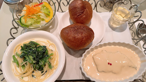 また、自分が生きている間に無くなって欲しくないお店が増えてしまった。 このお店もそんなお店の一つである。 夜、美味しいクリームパスタが食べたくて来訪。 結果、全てが美味しかった。美味しくて動揺してしまう域だ。 ステーキ、ミニサラダ、本日のパスタ、パン(2個)、ドリンクがついたセットを注文。本日のパスタはわたしが行った時は二種類から選ぶことができ、ちょうどほうれん草のクリームパスタだったのでセットを頼むことにした。クリーム系の料理が大好きな私にとって、ステーキも最高なものだった。結婚式などで食べるような、高級感のあるステーキソースのお味。クロワッサンとシュークリームの間のようなパンにつけて食べると、これまた美味しい。パスタも想像通りのまろやかなクリームパスタで幸せに。全部食べられるかな…と、はじめは不安もあったが、パスタはセットのサイズなので、ちょうどいいくらいだった。 さらに、食後のケーキとドリンクセットも追加していた。はじめのオーダーで頼み、ショーケースからじっくり選ぶ。レアチーズケーキとショートケーキで悩んだが、今回は葡萄がのったショートケーキを選択。ドリンクは、ソイラテと抹茶カプチーノと悩んだが、ソイラテに。ドリンクも、ケーキも、それだけで1000円はしそうなくらい、大きめのサイズ、量で嬉しくなった。セットにいくら追加するのかは忘れてしまったが、わずかなプラス料金でここまでのデザートが出てくるのは本当に凄い。そして味もちゃんと美味しい。至れり尽くせりである。 「ごちそうさまでした。」 必ず再来すると心...