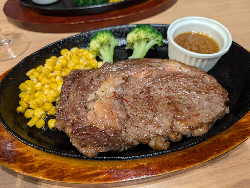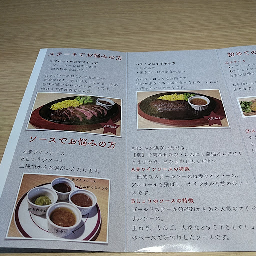 89歳になる父は250gのヒレカットステーキ、84歳になる母と妻はそれぞれ250gのリブロースステーキ、私は600gのハラミステーキを注文しました。ソースは醤油仕立てのGold...