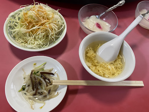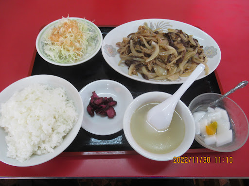 2022.11.30(水) 大学の前にある中華食堂、やさしさと思いやり、そっと学生たちの成長を見守っている。 ボリュームが有り値段のわりに品数が多くデザートまでセットされています。 *本日のおすすめ定食の「豚肉と玉ねぎの辛子炒め 730円」は、玉ねぎの甘さと旨みたっぷりの豚肉との相性もよく、まろやかな味わいが美味しいです。 「五目ラーメン 730円」は、シャキシャキの野菜に甘辛の餡がタップリかかっていて中々麺に到達しません。(笑) 細麺との相性もよくまろやかなスープも最後までもみ干すほどです。
